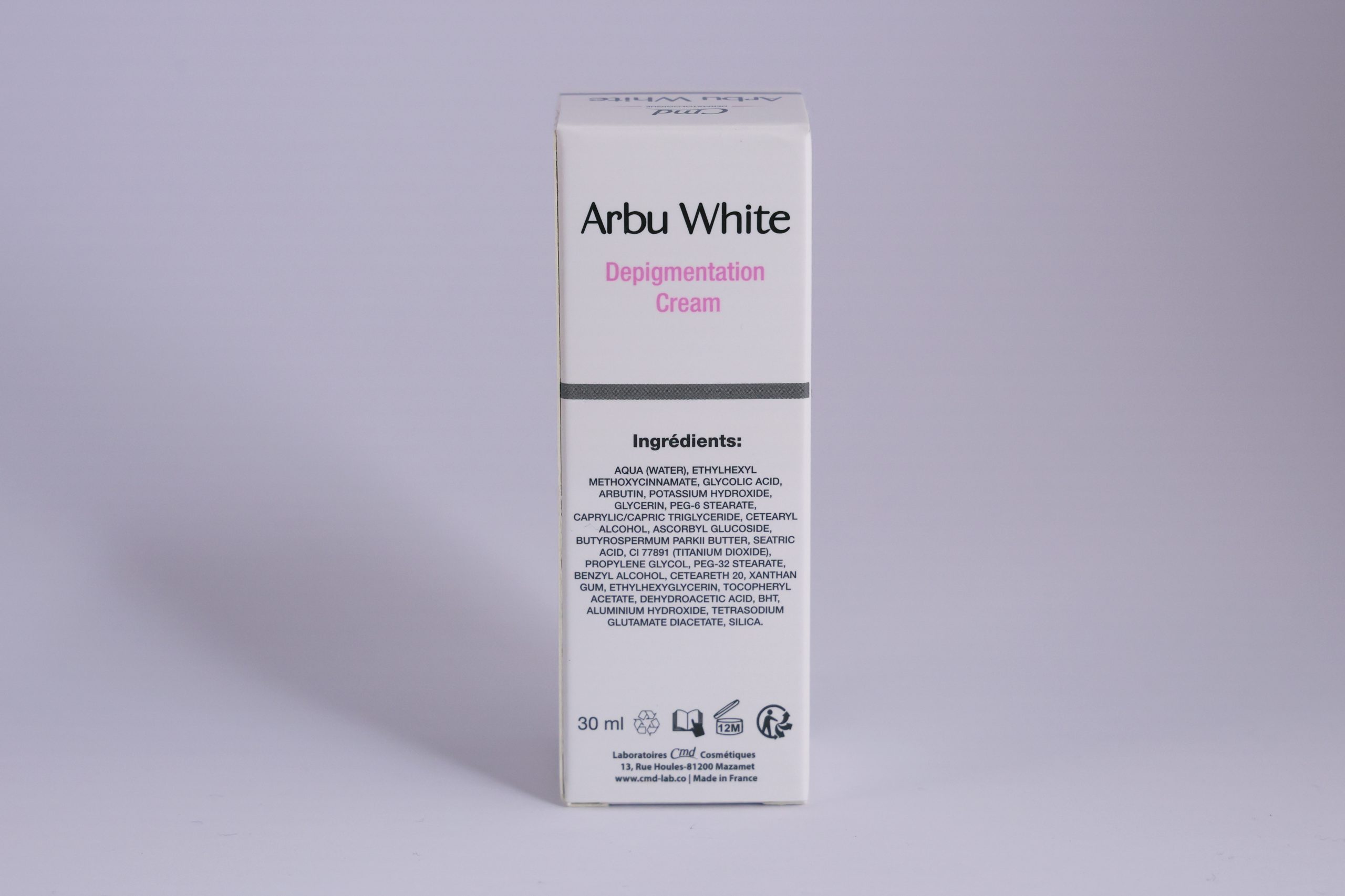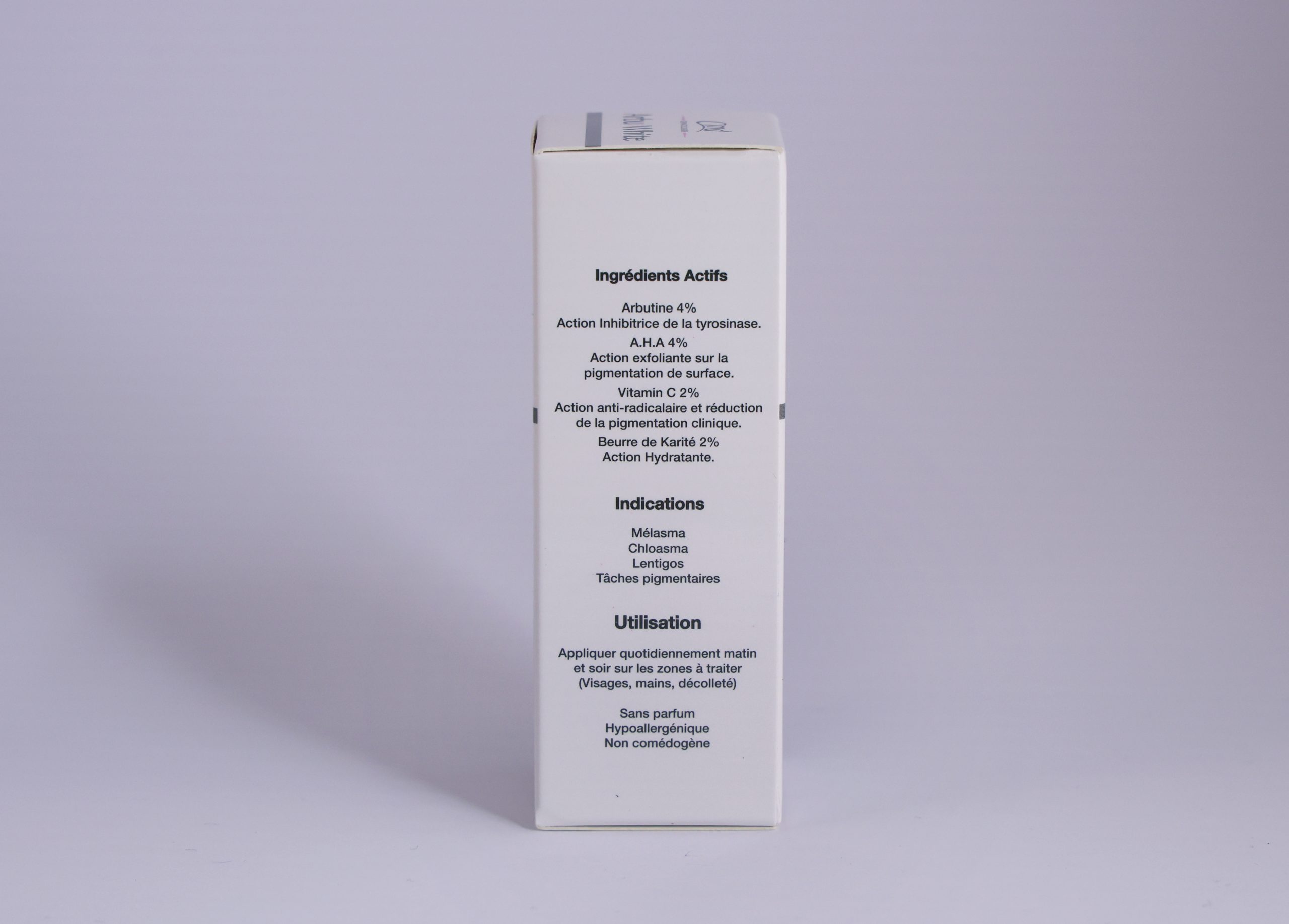 • Arbutine 4% (action en profondeur) inhibiteur de la tyrosinase en bloquant la production excessive de mélanine.