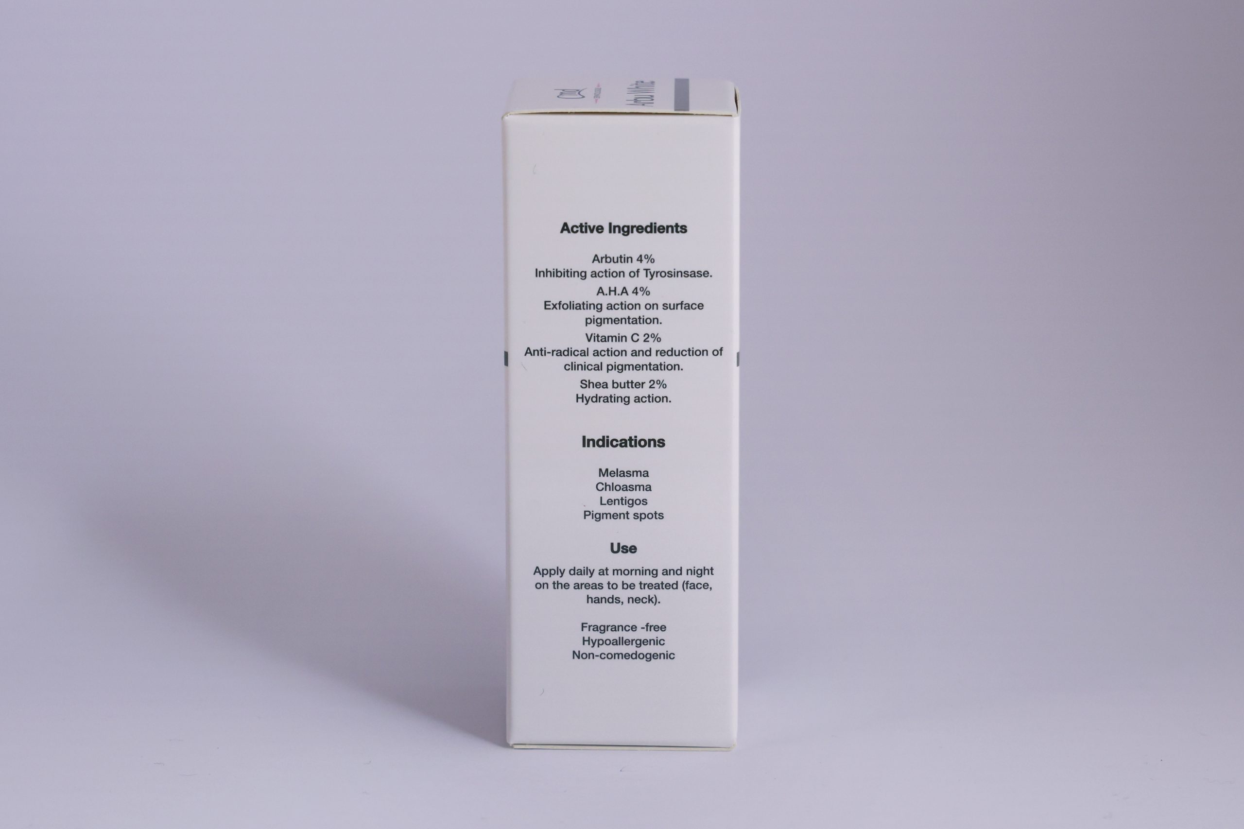 • AHA 7,2 % (action corrective) Élimine par exfoliation la pigmentation déjà présente.