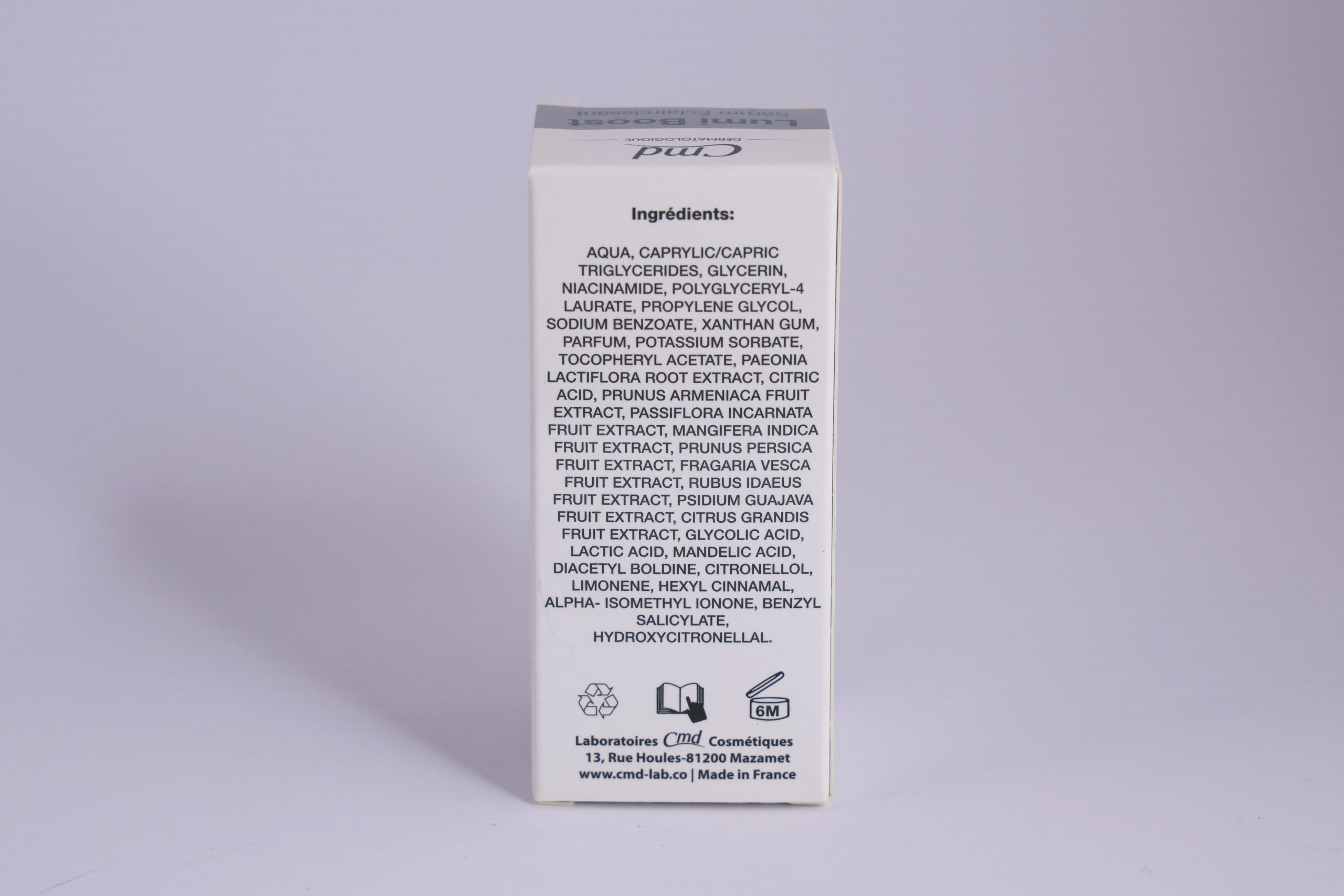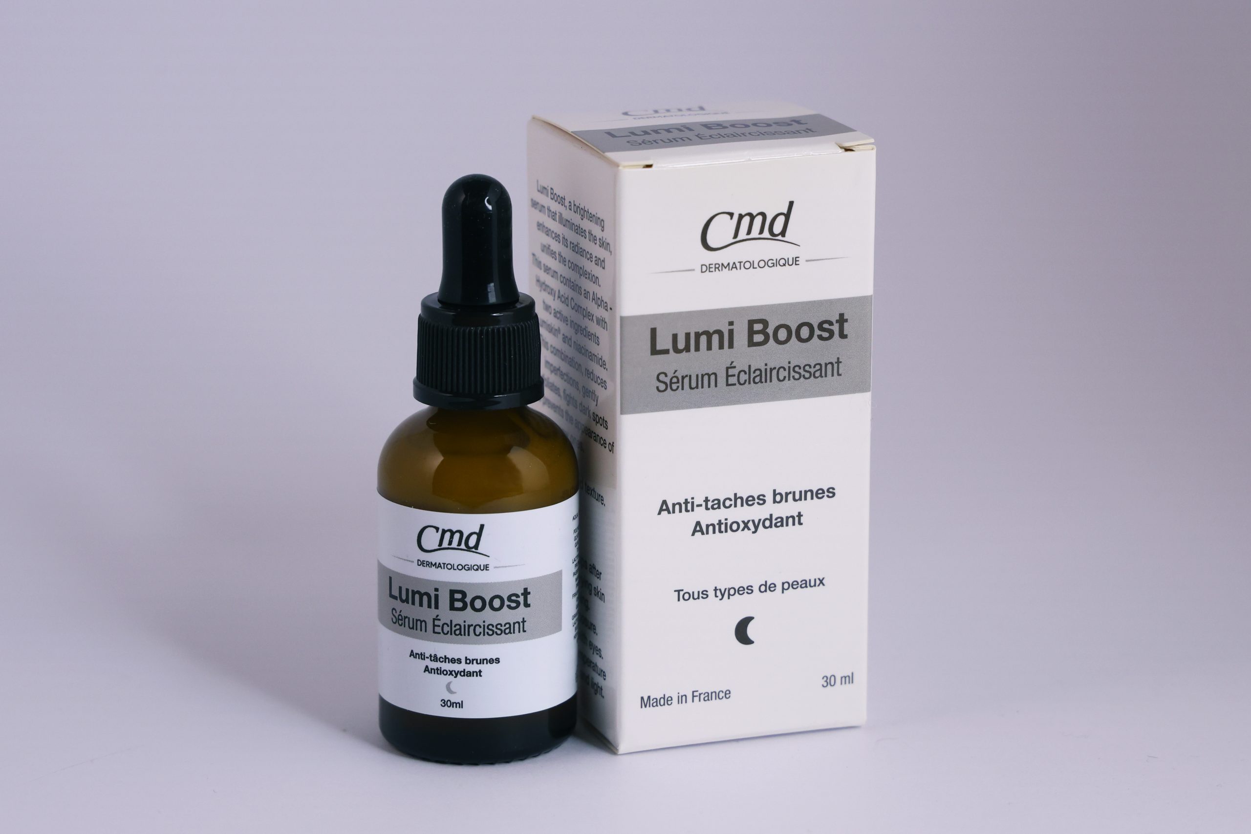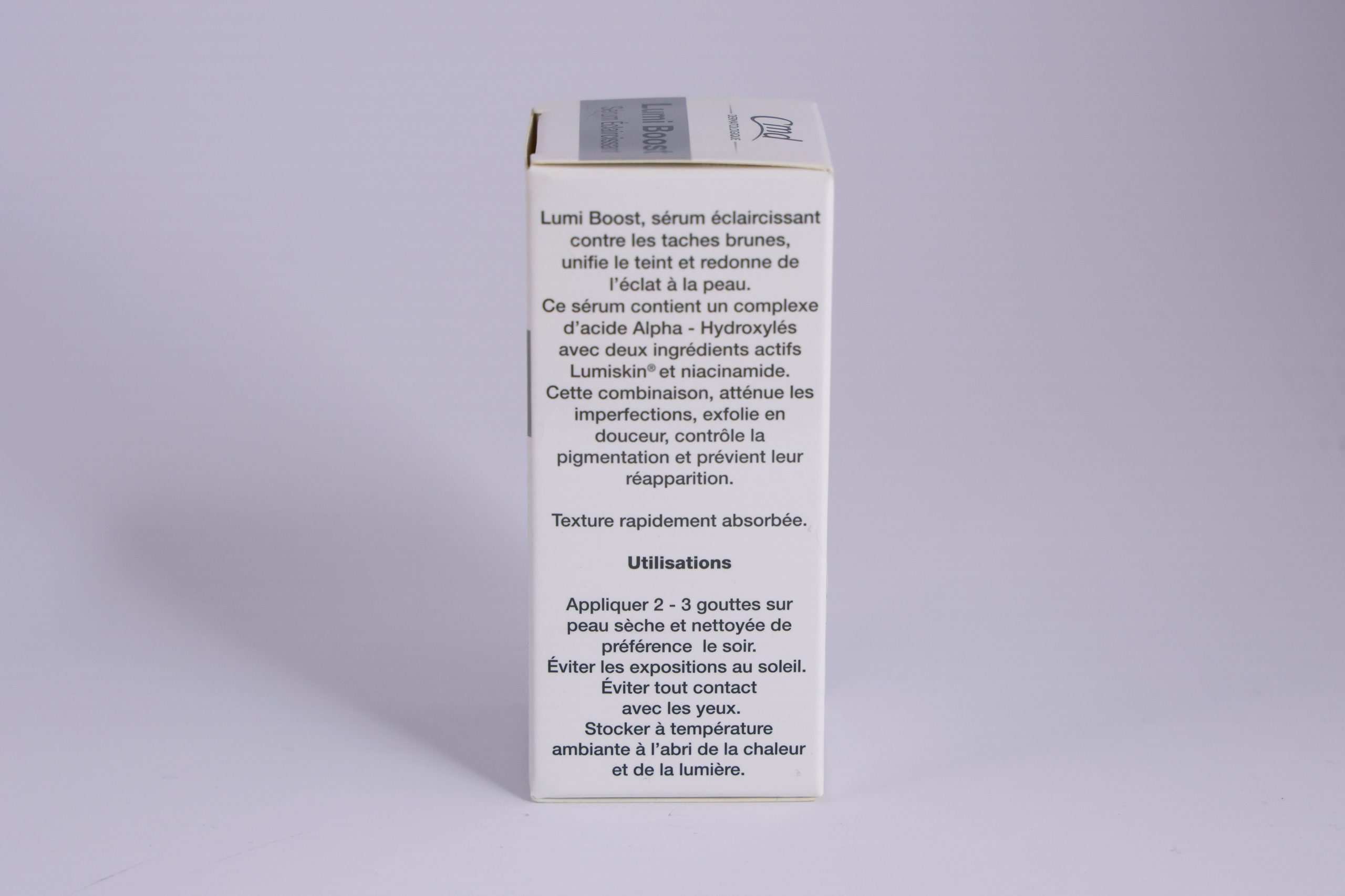 - Lumi Boost, sérum éclaircissant contre les taches brunes, unifie le teint et redonne de l’éclat à la peau.