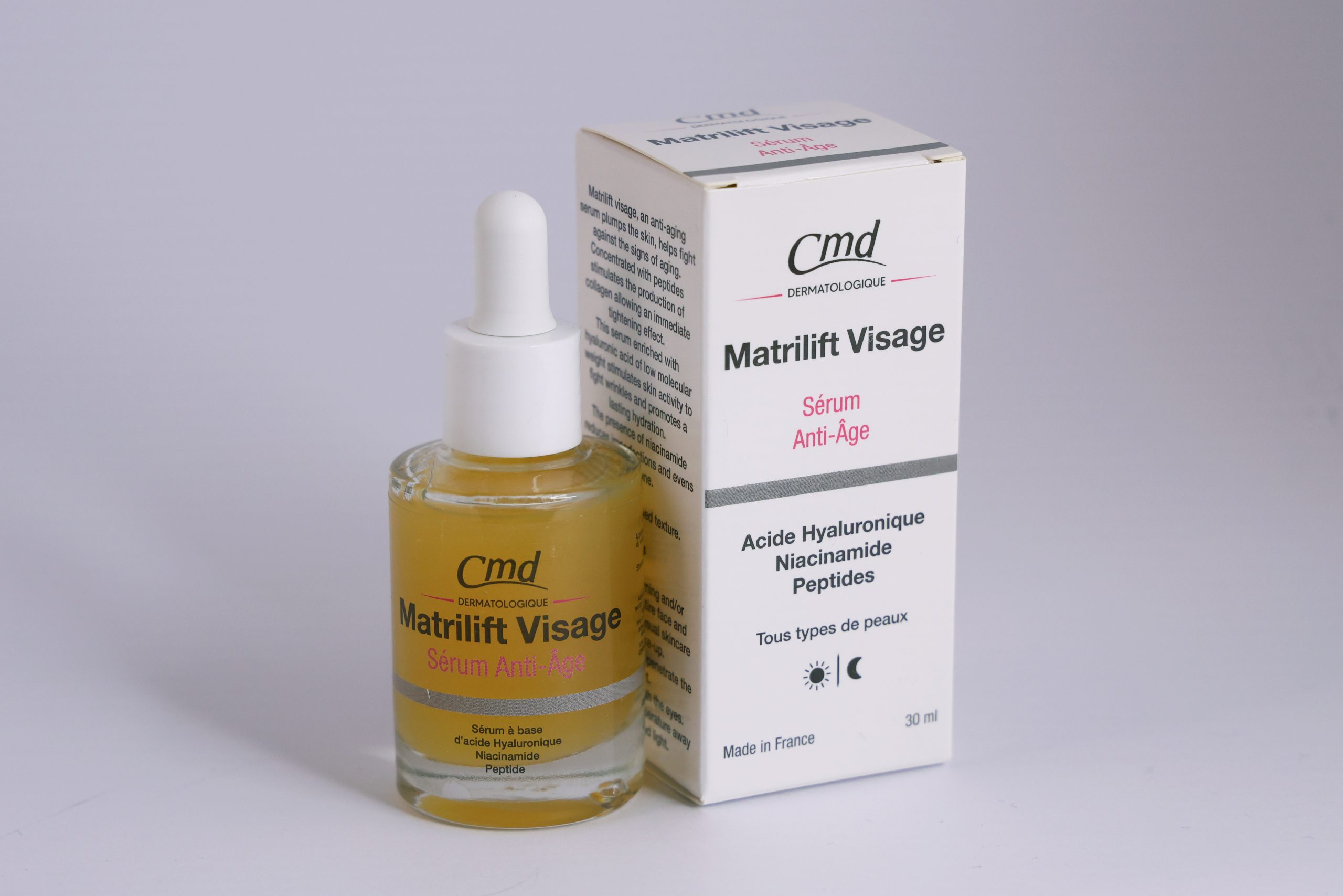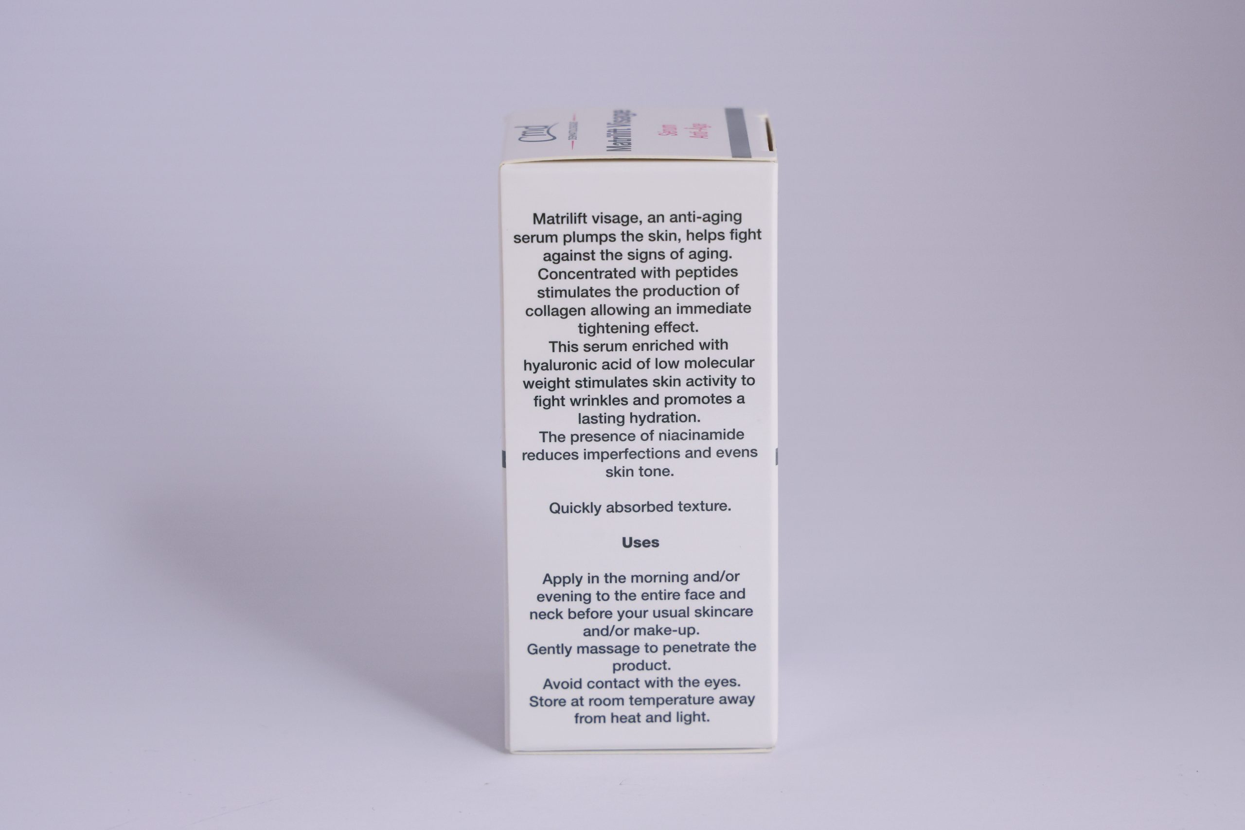 - Matrilift visage, an anti-aging serum plumps the skin, helps fight against the signs of aging.